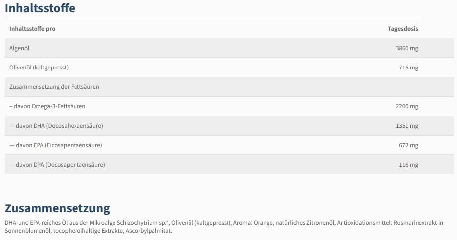 - 2,200 mg Omega-3-Fettsäuren pro Tagesdosis